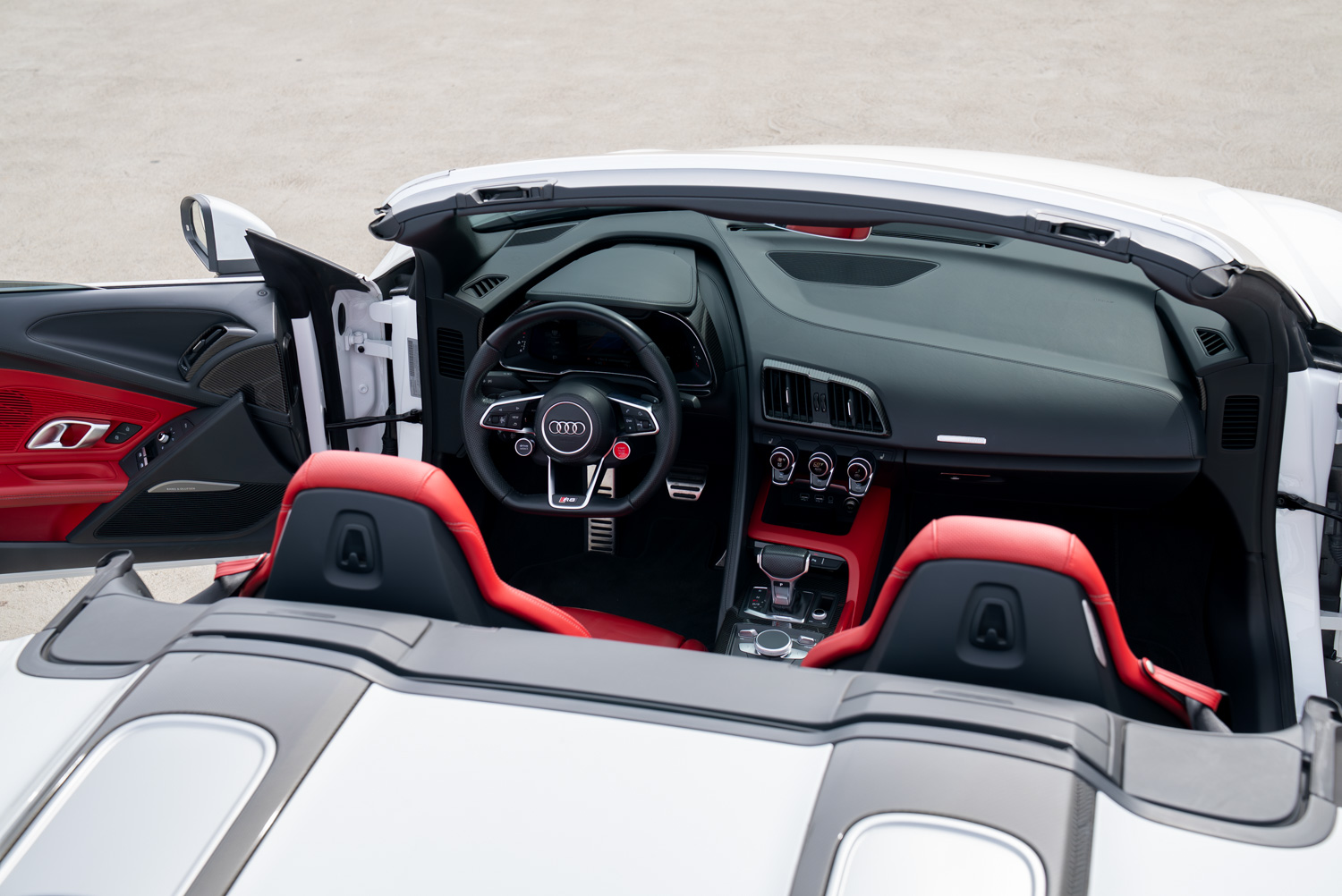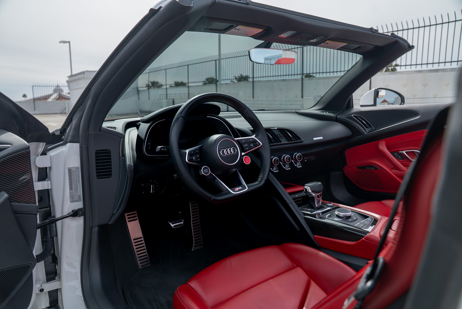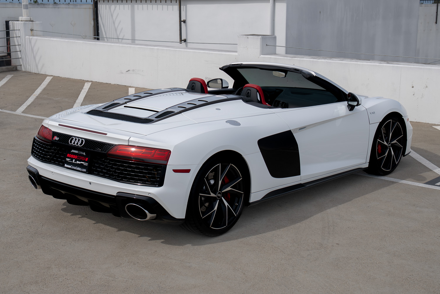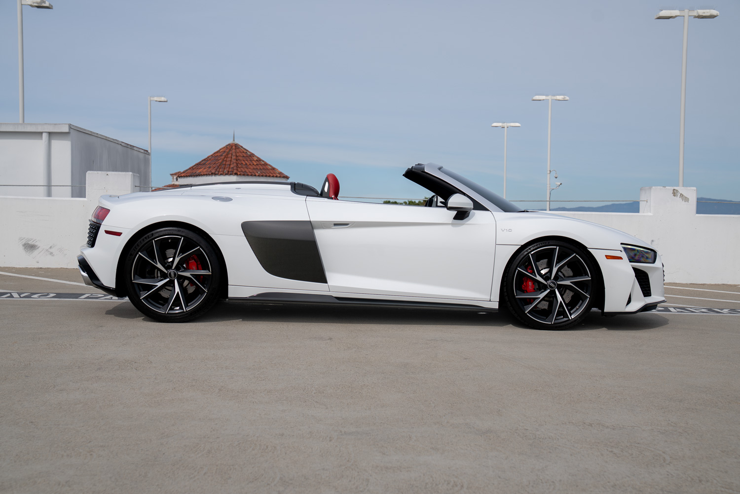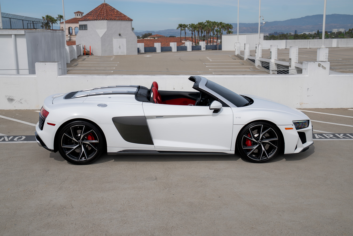 With its mid-engine layout, sharp handling, and a lightning-fast 7-speed dual-clutch transmission, the R8 Spyder offers an engaging and visceral driving experience. The retractable soft top can open in about 20 seconds, allowing drivers to fully enjoy the signature V10 sound.