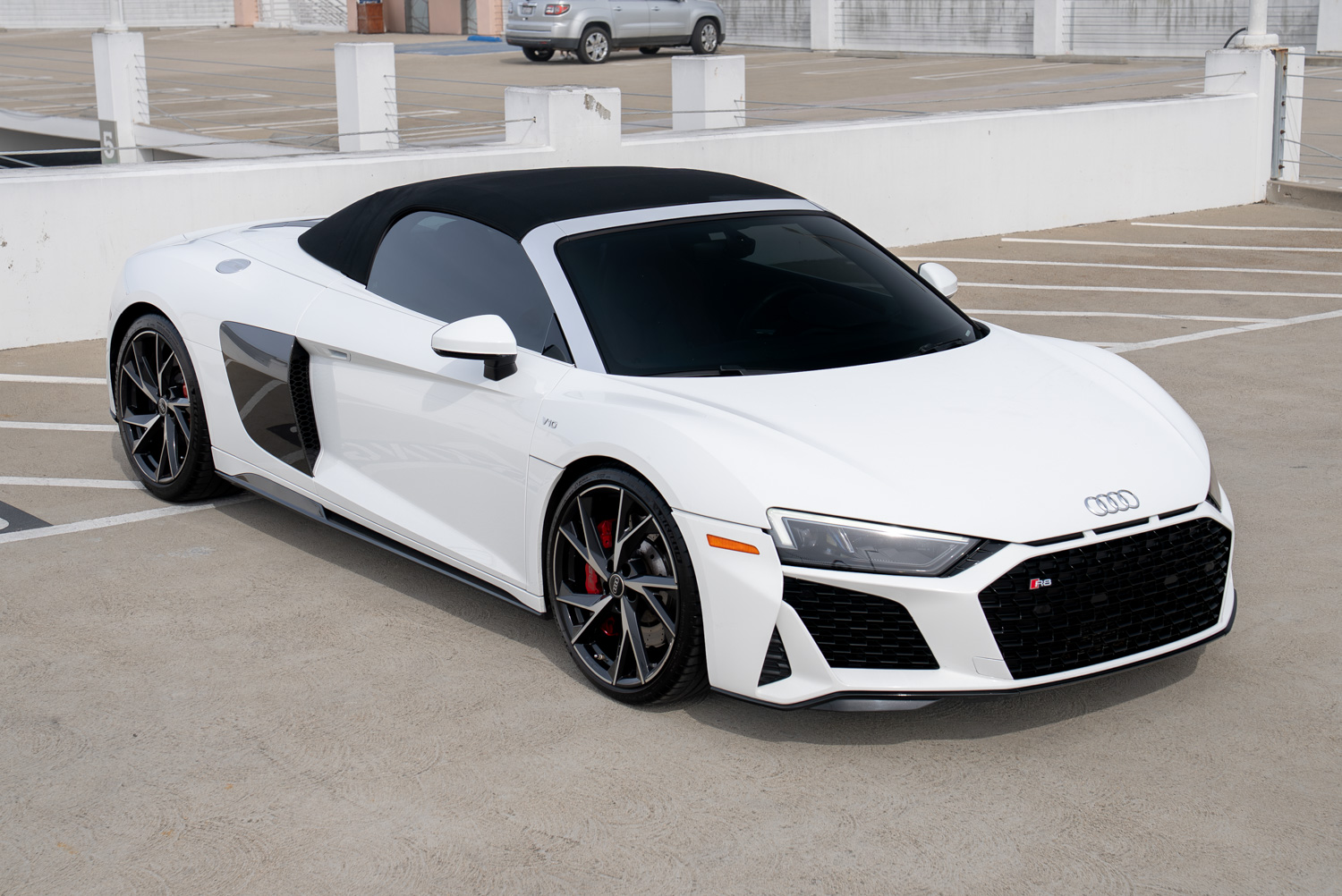 The 2022 Audi R8 5.2 V10 Performance Spyder is a striking open-top supercar that blends exotic performance with everyday usability. Powered by a naturally aspirated 5.2-liter V10 engine, it produces up to 562–602 horsepower depending on configuration, delivering blistering acceleration from 0–60 mph in just over 3 seconds.